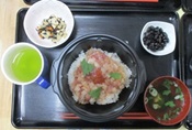 昼食はボリュームたっぷり海鮮丼を嬉しそうに