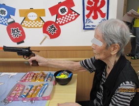 こちらは「射的コーナー」真剣な眼差しで