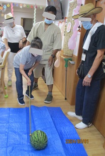 スイカ割り」力を込めて 「釣り堀」コーナー~