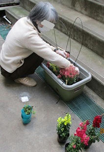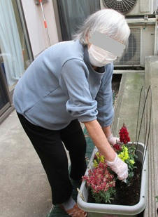 そしてこちらは施設のお庭で、プランターに綺麗なお花を植える